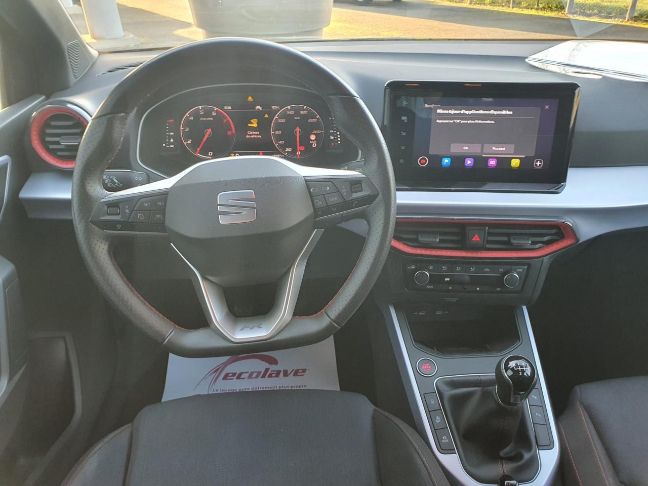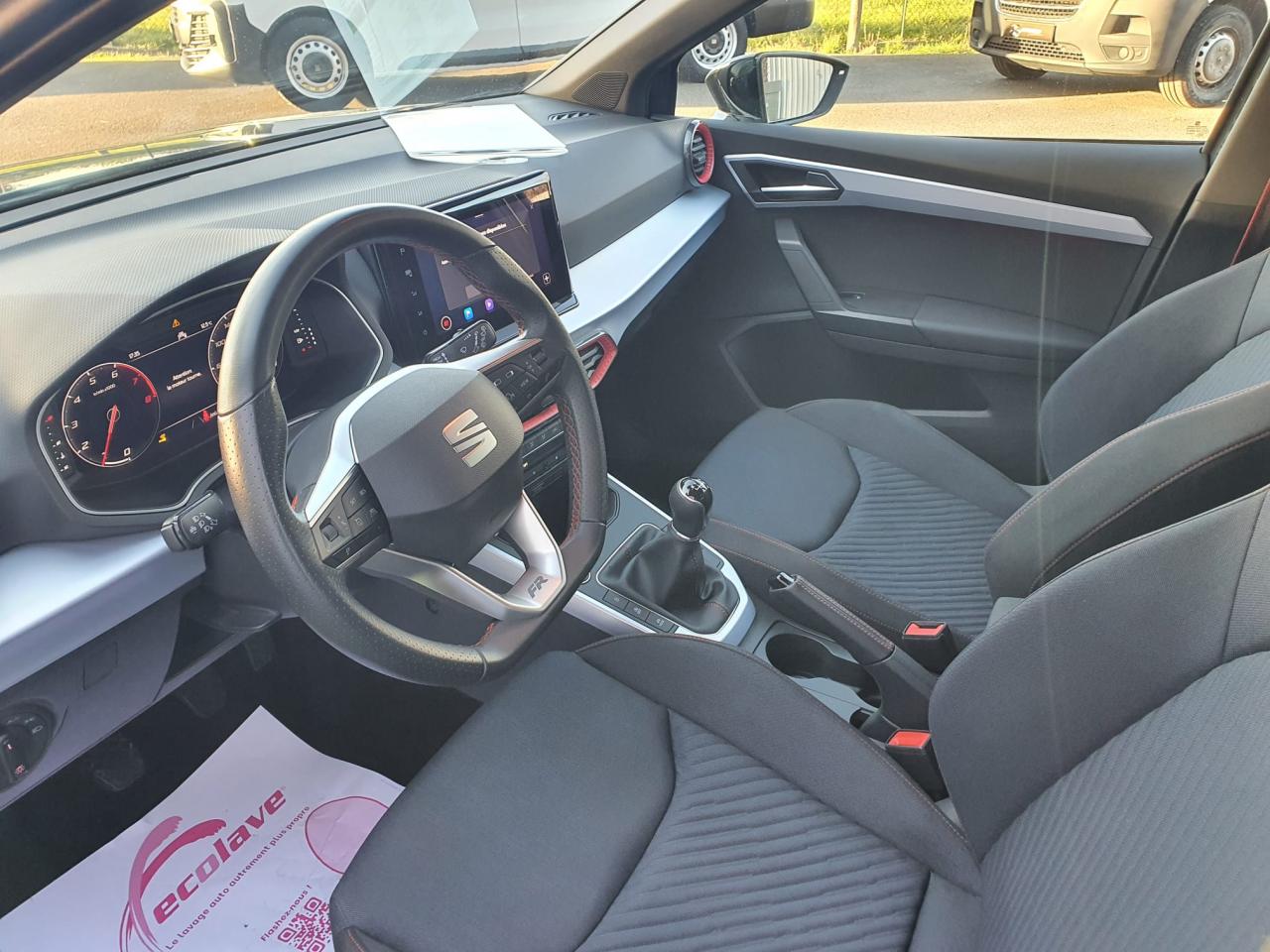 Nous vous proposons un SEAT Arona 1.0 TSI 115 chevaux, boîte manuelle 6 vitesses, en finition FR (phase 2),