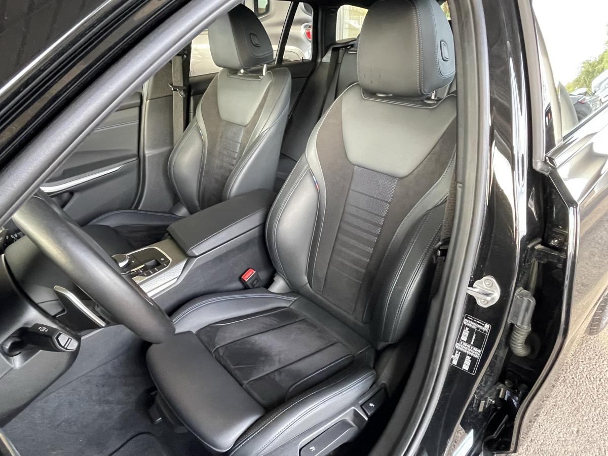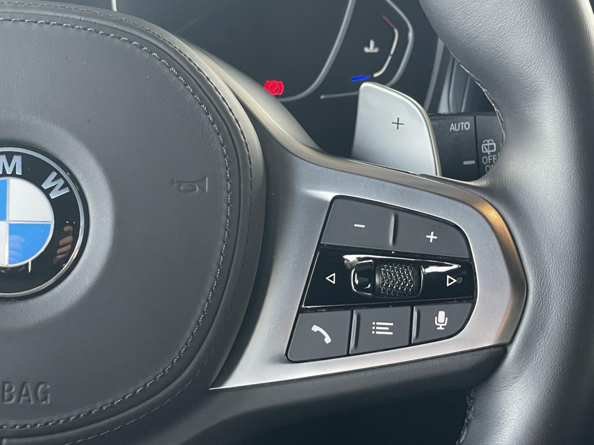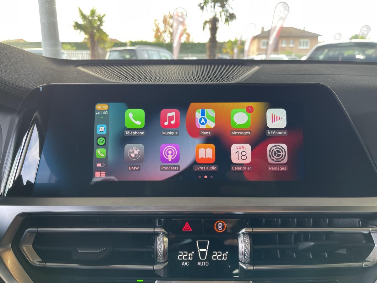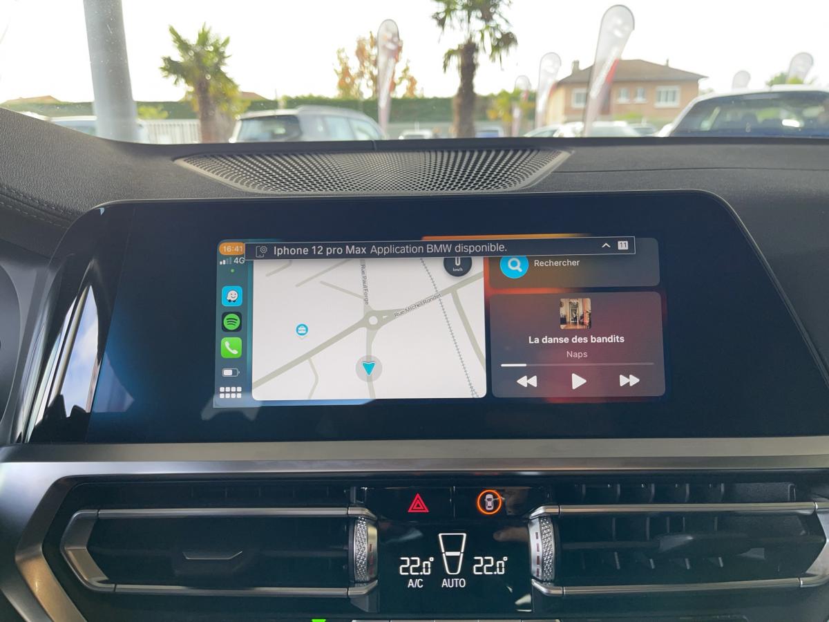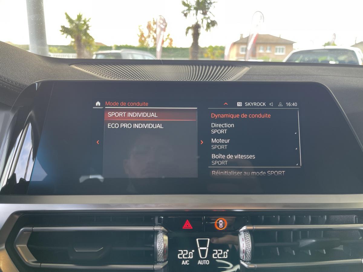 ABSAccoudoir avant/arrièreAide au démarrage en côteAirbagsAllumage automatique des projecteursAppleCarPlay / AndroidAuto Attention Assist : système de détection de somnolenceAuto HoldAvertisseur de risque de collision (détection par caméra)Avertisseur franchissement de ligne Banquette arrière 3 places avec dossiers rabattables en trois parties (40/20/40)Bluetooth Caméra de recul Climatisation automatique 3 zones Commande vocaleDémarrage sans clé via le bouton de démarrage Start/Stop avec contour chroméDétecteur de pluie Détecteur de somnolence Eclairage d'ambianceEcran tactile ESPFeux de croisement automatique Feux de jour à LEDFixations ISOFIX aux places latérales arrières pour sièges enfantFrein de parking électromécaniqueGPSHayon a ouverture électrique mains libres Jantes en alliage léger 18'' diamantées Kit anti-crevaison Palettes au volant Prise 12VPrise USB avant Prise USB-C X2 arrièreProjecteurs antibrouillard à LEDProjecteurs BMW LEDRégulateur et limiteur de vitesseRétroviseurs extérieurs à réglage électrique Rétroviseurs extérieurs rabattables électriquement et électrochromatique du côté conducteurRétroviseurs intérieur jour/nuit automatique Radars de stationnement avant et arrière PDCReconnaissance des panneaux de signalisation Sélecteur de mode de conduite - 3 modes : "ECO PRO", "Confort" et "Sport"Sellerie Alcantara / Similicuir Sensatec Schwarz avec surpiqûres contrastantes bleuesSièges conducteur et passages réglables en hauteur et inclinaison du dossierSortie d’échappement simple, ronde et chromée de chaque côté Touches multifonctions sur le volantVitres électriques avant et arrière Volant M gainé cuirVolant réglable en hauteur et en profondeur