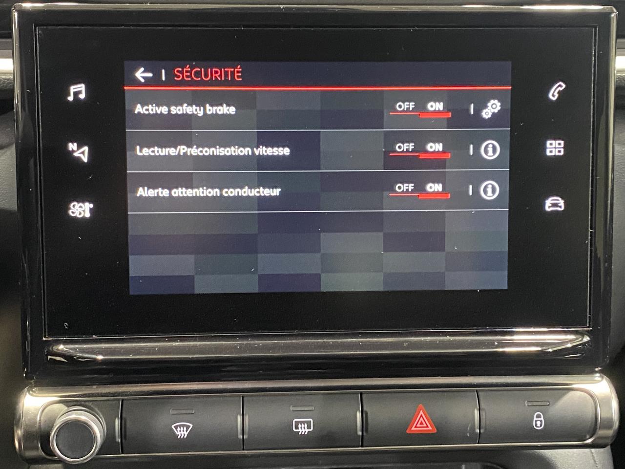 ABS avec répartiteur électronique de freinage (REF) et aide au freinage d'urgence (AFU)Active Safety BrakeAide au stationnement arrièreAirbump Black avec ponctuelle colorée (blanc ou rouge si toit rouge)Alerte attention conducteurAlerte franchissement de ligneBanquette arrière fractionnable 2/3 - 1/3BV6Climatisation automatique avec fonction filtrage de l'airCommandes au volant du système audioCommutation automatique des feux de routeContrôle dynamique de stabilité (ESP)Détecteur de sous GonflageEcran tactileFeux diurnes à LEDKit de dépannage provisoire de pneumatiquesKit mains libres Bluetooth et prise USBLève-vitres avant électriques et séquentielsLecture des panneauxMirror ScreenPack SafetyPack VisibilitéPrises 12 VProjecteurs antibrouillard avantRégulateur et limiteur de vitesseRétroviseur intérieur jour nuit automatiqueRétroviseurs réglables et rabattables électriquementSièges avant chauffantsSystème de fixation ISOFIX sur les sièges arrièreSystème Start & Stop