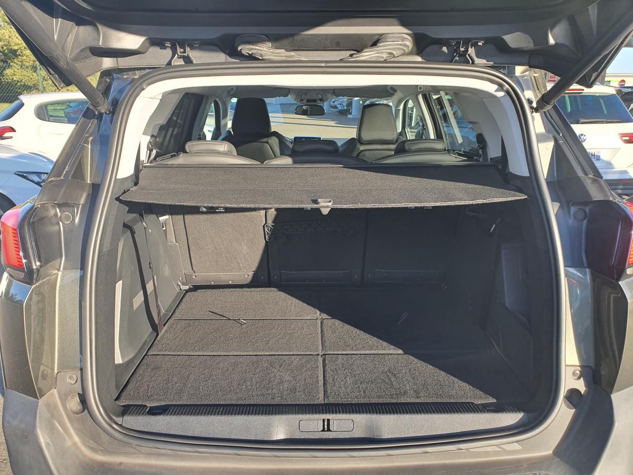 3 Sièges arrière en rang 2 (indépendants, coulissants, inclinables et escamotables dans le plancher)ABS (Antiblocage de roues)Accès et démarrage mains-libresAccoudoir central avant à ouverture papillon, avec compartiment de rangement éclairé et réfrigérableAide au Freinage d'Urgence (AFU)Aide sonore et graphique au stationnement arrièreAir conditionné automatique bi-zone avec aérateurs aux places arrièreAirbags frontaux et latéraux conducteur et passager à déclenchement adaptatif pour les Airbag frontaux (Airbag passager désactivable par clé)Airbags rideaux de tête aux places avant et arrièreBarres de toit longitudinales profilées en aluminiumContrôle dynamique de stabilité CDS avec antipatinage électronique ASRDeux sièges escamotables et extractibles pour les passagers du troisième rangDirection assistée électrique, avec colonne de direction réglable en hauteur et profondeur (mécanique)Fonction Mirror ScreenHayon mains libres : volet de coffre motorisé avec accès mains libresISOFIX : fixations des sièges-enfants pour la 2ème rangéeJantes alliage 18" 'Detroit' bi-ton diamantéesLève-vitres électriques avant et arrière, séquentiels et antipincementPack City 1Pack Safety PlusPack VisibilitéPeugeot Connect : Navigation 3D connectée avec reconnaissance vocale + PEUGEOT Connect SOS & AssistancePeugeot i-Cockpit combiné tête haute numérique reconfigurable, écran tactile capacitif 8" et volant compact multi-fonctionsPrise 12V (x3) : à l'avant, à l'arrière et dans le coffrePrise USBProjecteurs 'Peugeot Full LED Technology'Projecteurs antibrouillard halogènes avec enjoliveurs chromésRadio 6 HP, bi-tuner compatible MP3 et connectivité Bluetooth (audio streaming, kit mains libres), avec commandes au volant, écran tactile capacitif 8"Radio numérique terrestreRecharge smartphone sans filReconnaissance des panneaux de vitesse et préconisationRégulateur et limiteur de vitesseRétroviseurs extérieurs électriques et dégivrantsRétroviseurs extérieurs rabattables électriquement avec éclairage d'approche à LEDRideaux pare-soleil en rang 2Siège conducteur avec réglage lombaire (mécanique)Siège conducteur réglable en hauteurTablettes aviation au dos des sièges de la 1ère rangéeVolant cuir pleine fleur