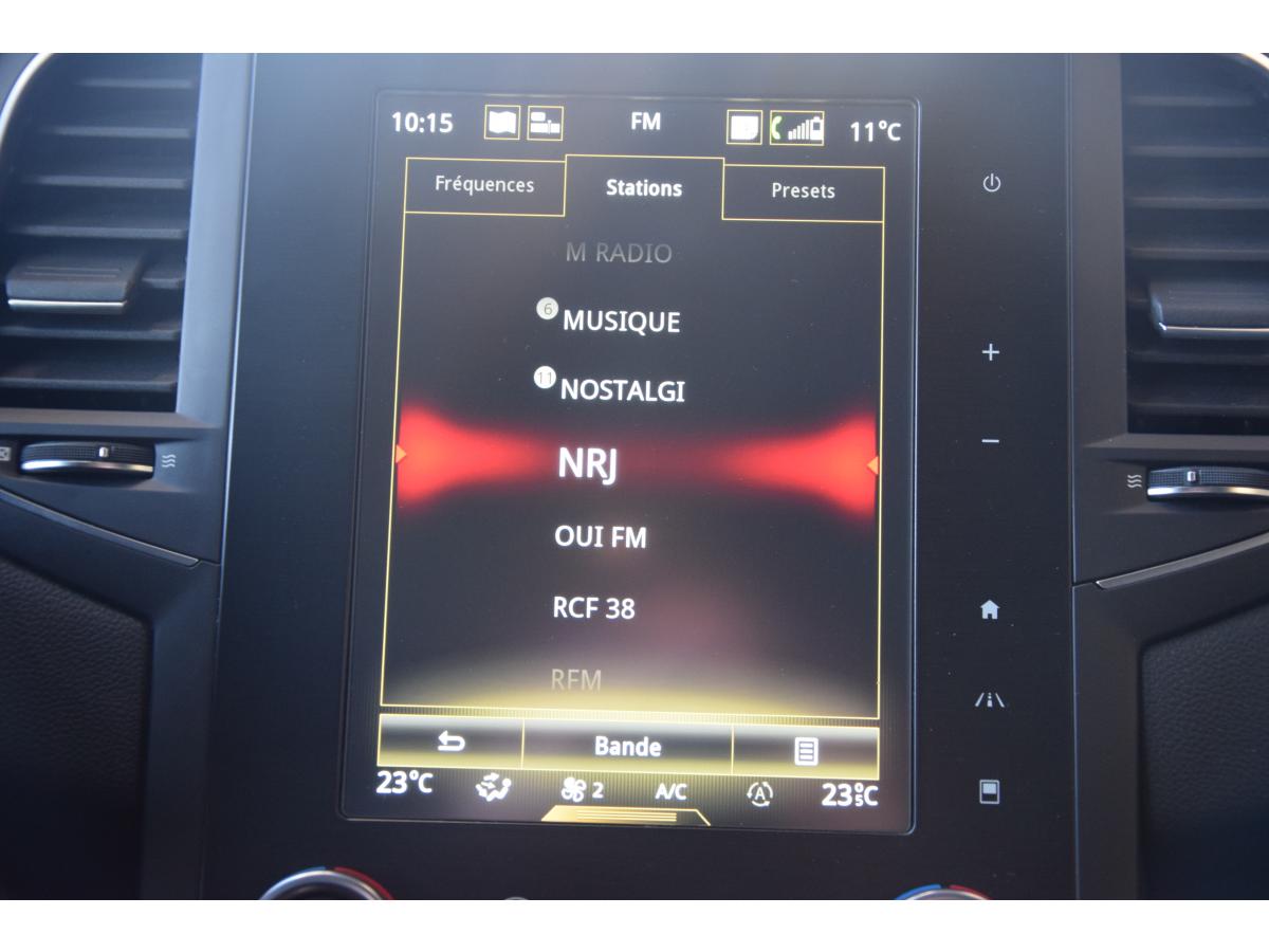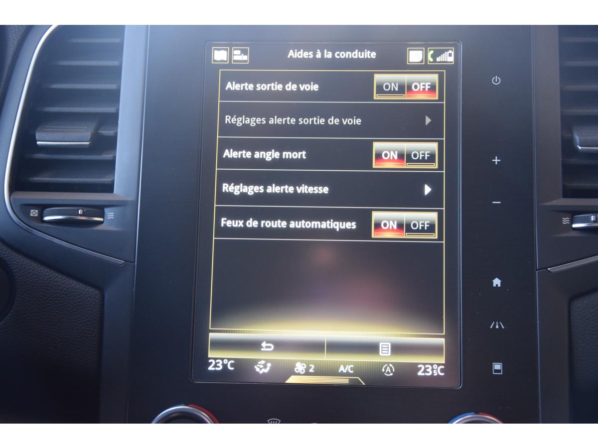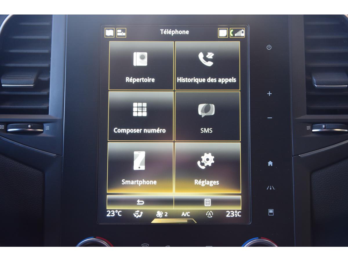 ABS avec aide au freinage d'urgenceCommande du système audio au volant VOEUCapteurs de pluie et de luminositéCarte Renault mains-libres (accès, démarrage, condamnation à l'éloignement)Climatisation automatique bizoneCompatibilité Apple CarPlay et Android AutoCommande vocale Ecran tactile Console centrale avec accoudoir et compartiment de rangementContrôle dynamique de trajectoire (ESC)Feux de jour à LED BV6Frein de parking électrique Easy park assist Jantes alu bi-tons 18"Alerte sortie de voie Lève-vitres arrière électriques impulsionnelsLève-vitres avant électriques impulsionnelsPack GT-Line ExtérieurGPSPrise auxiliaire Prise USB x2Prise 12V à l'avantProgramme Eco-modeProjecteurs full LED Pure Vision Rétroviseur intérieur jour/nuit automatique Régulateur et limiteur de vitesseRétroviseurs extérieur rabattables Rétroviseurs extérieurs électriques et dégivrantsSurveillance des angles morts Multi-sense Siège avant réglable en hauteurVitres arrières surteintées Système de fixations ISOFIX aux 2 places latérales arrièreSystème de surveillance de la pression des pneusVolant cuir réglable en hauteur et profondeurAide au stationnement avant et arrièreAirbags BluetoothCaméra de reculBanquette arrière rabattable 1/3-2/3